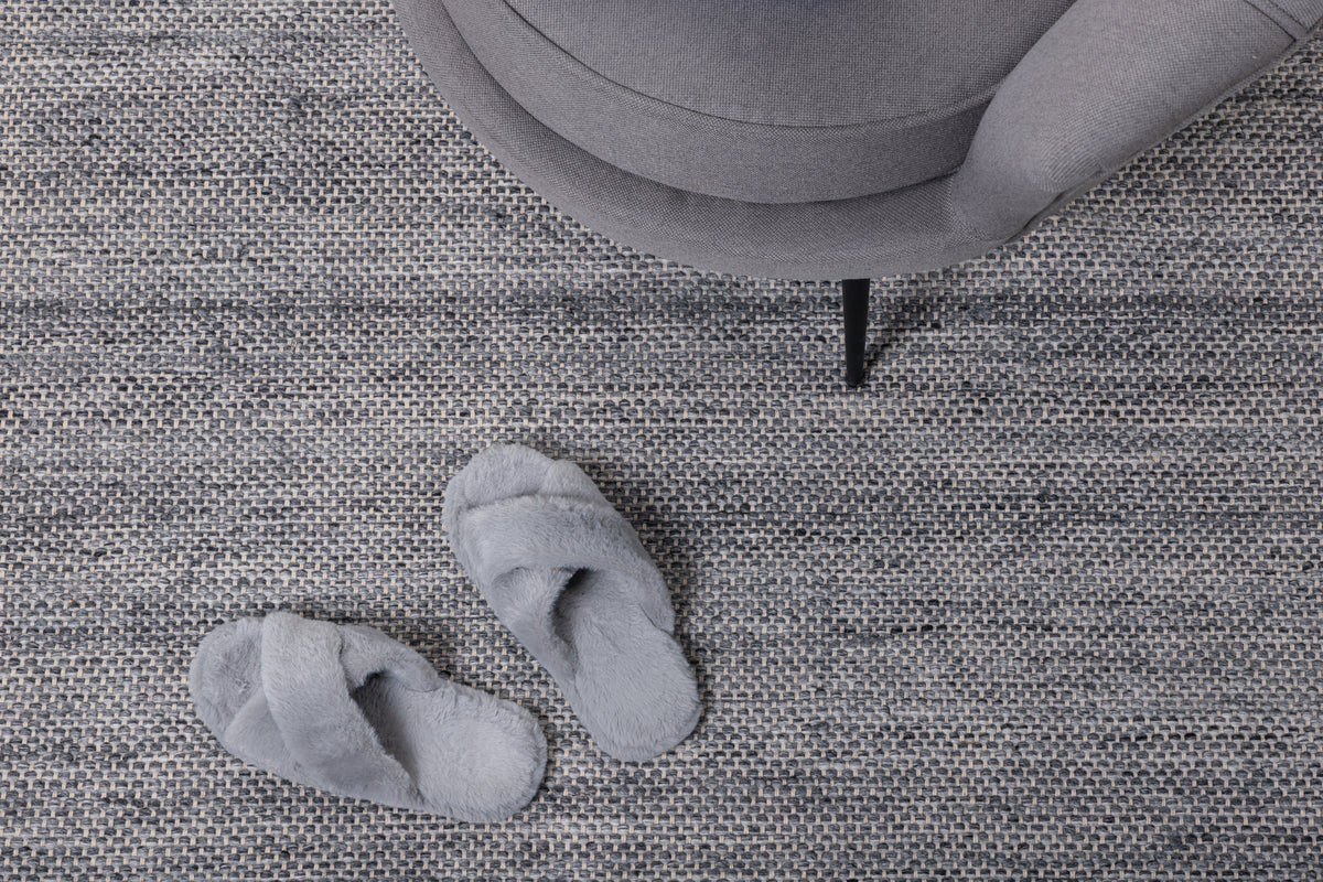 Dekorieren Sie Ihr Zuhause mit einer stilvollen Polyestermatte in elegantem Graphitgrau. Devi ist eine handgewebte, rechteckige Schönheit, die in ihrer ganzen Schlichtheit besticht. Sie besteht aus 80 % Polyester und 20 % Baumwolle (Rückseite). Das Material ist elegant, geschmackvoll und langlebig. Dieser Teppich verleiht Ihrem Zuhause ein gemütliches und modernes Ambiente und überzeugt mit seinem klassischen Look. Ob im Wohnzimmer, Flur oder Schlafzimmer – der Teppich wird zu einem schönen Einrichtungsdetail. Pflegehinweis: Staubsauger mit Bürstendüse und regelmäßigem Staubsaugen. Sollten Flecken auf der Matte auftreten, behandeln Sie diese umgehend mit einem feuchten Tuch oder Papiertuch. Sorgfältig reinigen, Bürsten können den Teppich beschädigen und farbige oder gemusterte Lappen können ihre Farbe auf den Teppich übertragen.