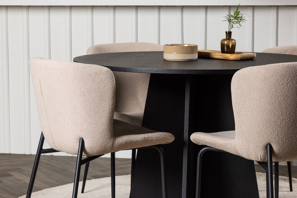 Bootcut & Modesto Runder Esstisch 110 cm Schwarz + Esszimmerstuhl 2er-Pack Beige