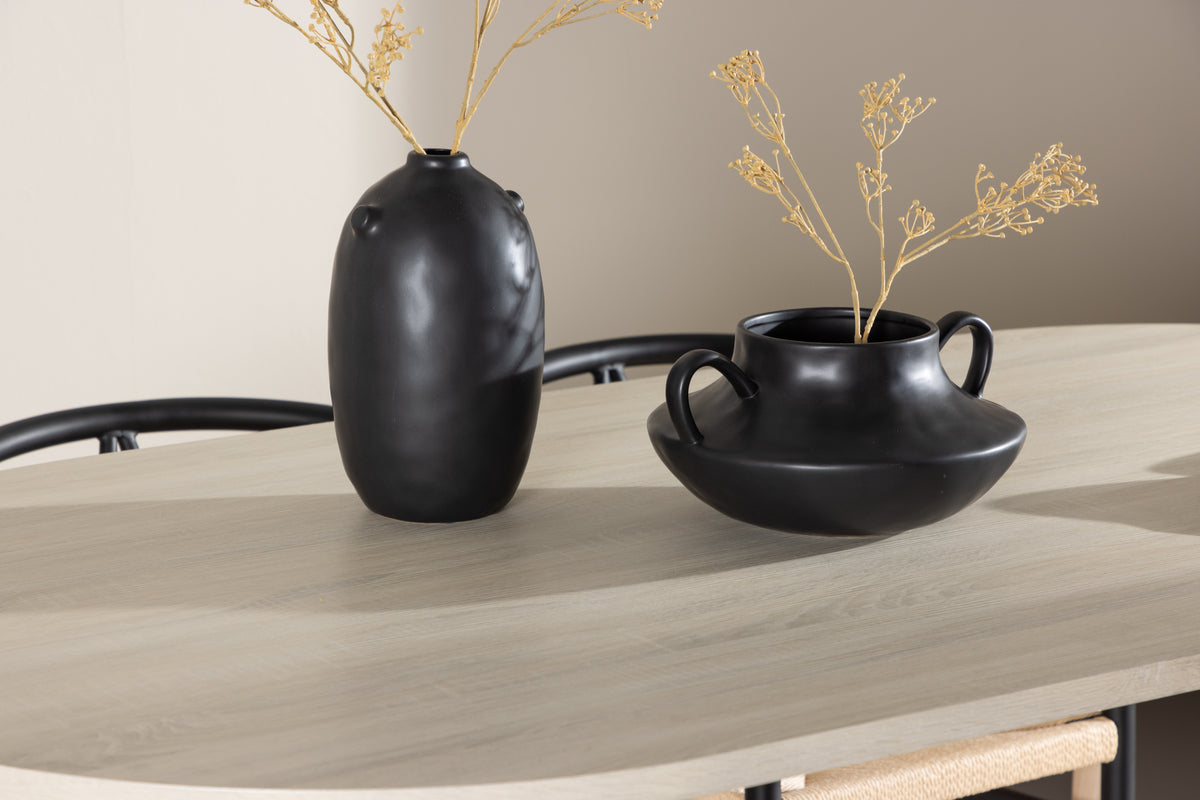Alfons & Andy Esszimmerstuhl Schwarz + Ovaler Esstisch 180 x 90 Whitewash