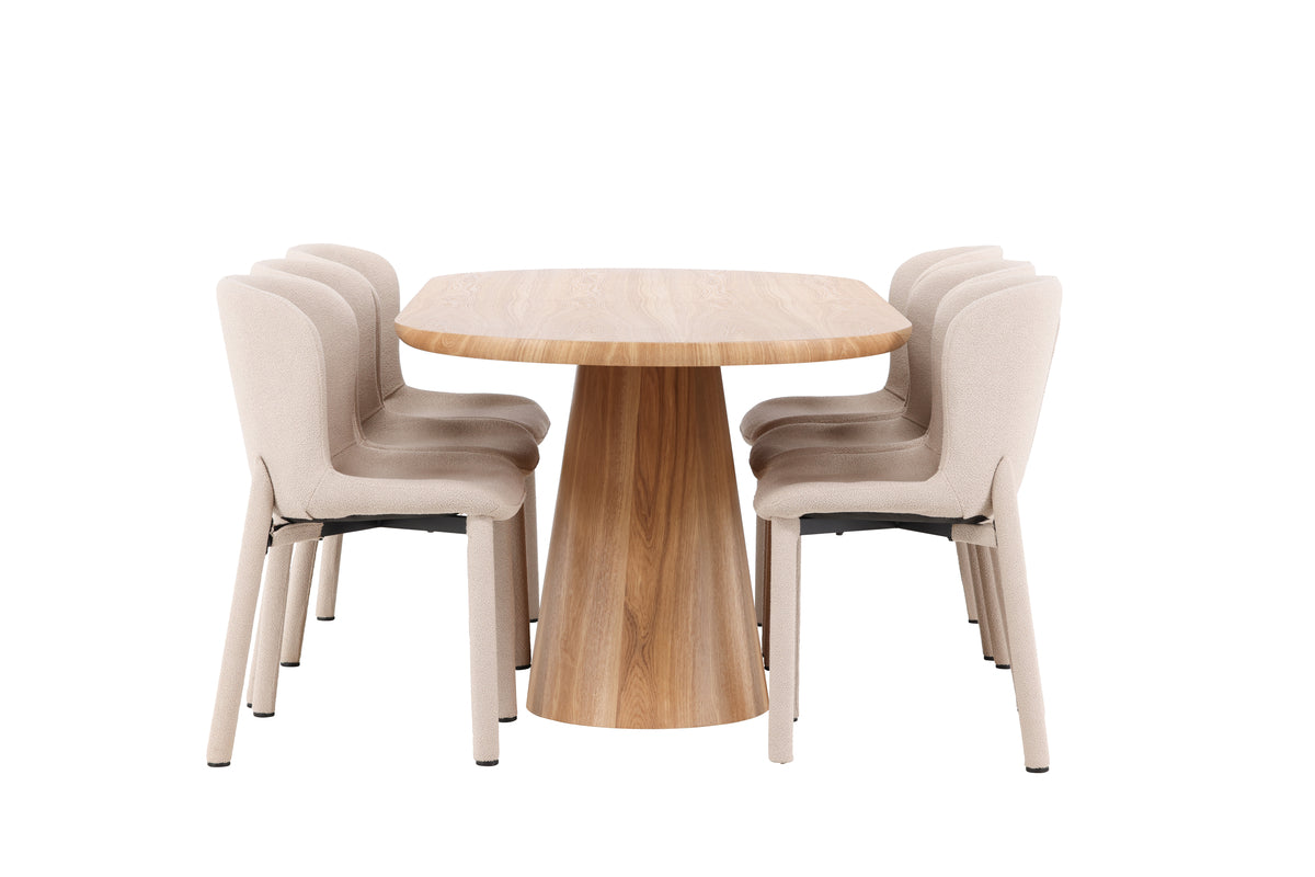 Stjärnö & Astoria Ovaler Esstisch 200 x 90 Natur + Esszimmerstuhl 2er-Pack Beige